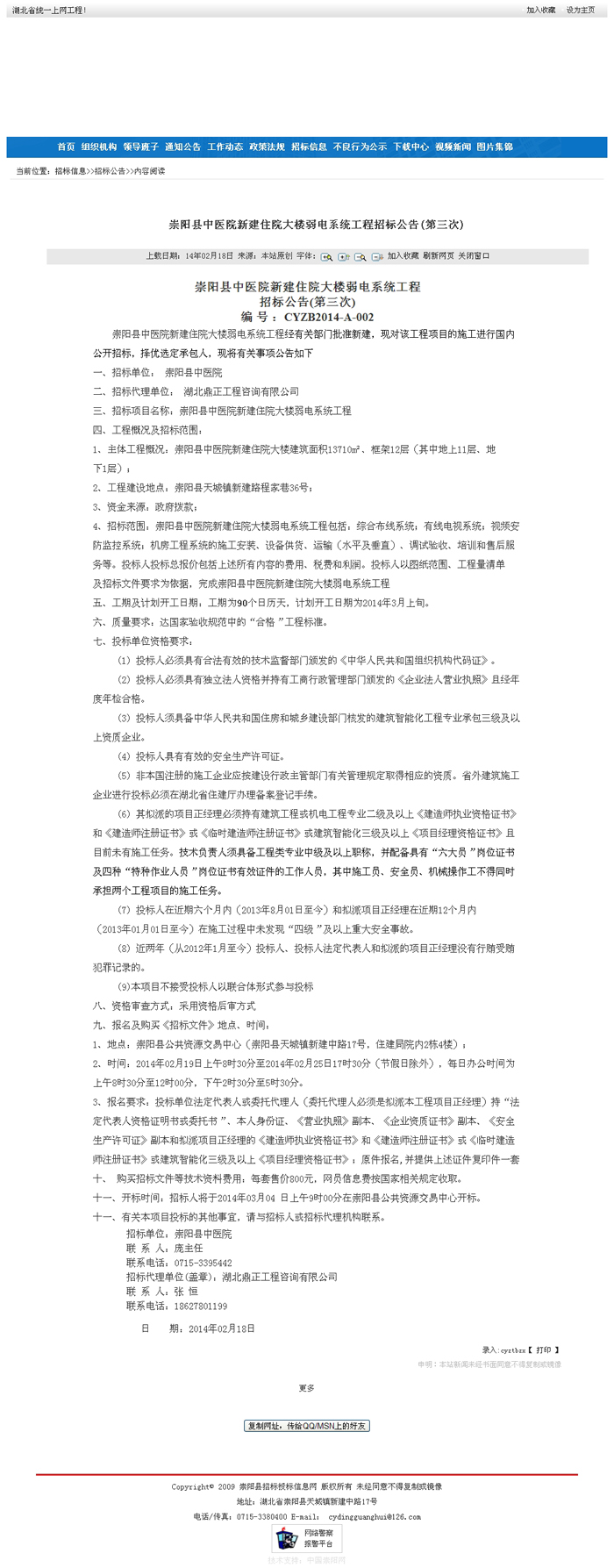 崇陽(yáng)縣中醫(yī)院新建住院大樓弱電系統(tǒng)工程