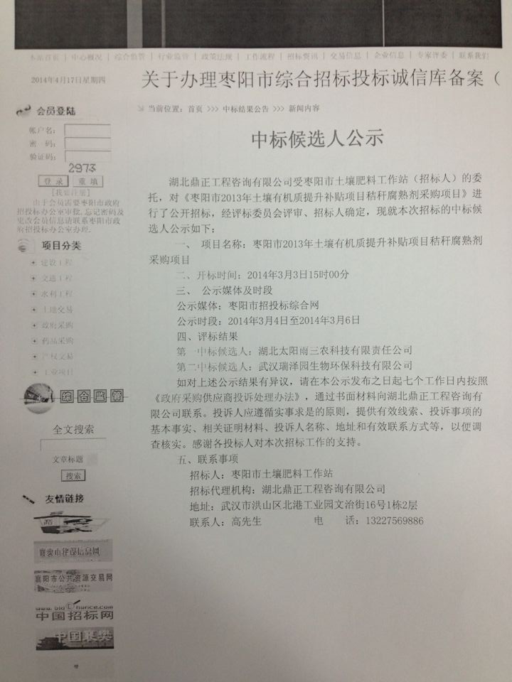 棗陽市2013年土壤有機(jī)質(zhì)提升補(bǔ)貼項(xiàng)目秸稈腐熟劑采購