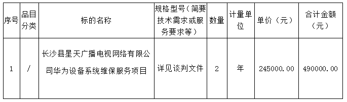 長沙縣星天廣播電視網(wǎng)絡(luò)有限公司華為設(shè)備系統(tǒng)維保服務(wù)項目