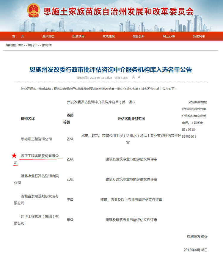【經營成果】我司入圍恩施州發(fā)改委行政審批評估咨詢中介服務機構庫