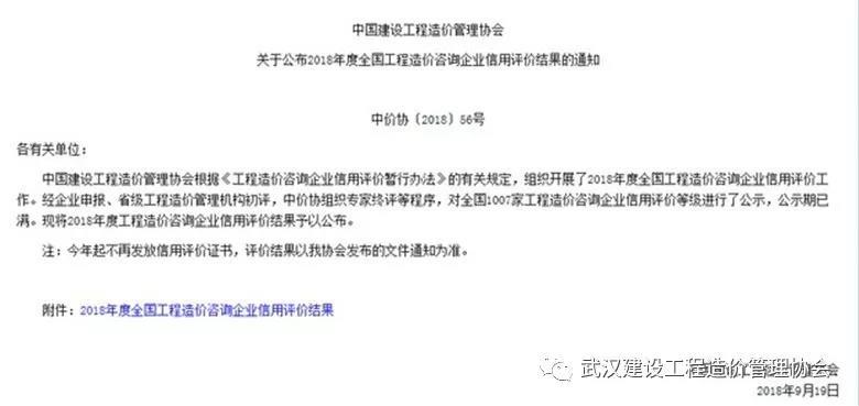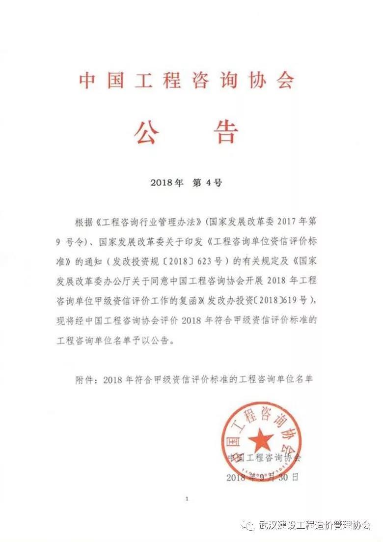 2018年9月19日,中國(guó)建設(shè)工程造價(jià)管理協(xié)會(huì)發(fā)布了“2018年度全國(guó)工程造價(jià)咨詢企業(yè)信用評(píng)價(jià)結(jié)果”,此次湖北省僅有22家工程造價(jià)咨詢單位獲得AAA信用評(píng)級(jí),我司從全國(guó)眾多參評(píng)單位中脫穎而出,獲此榮譽(yù)。