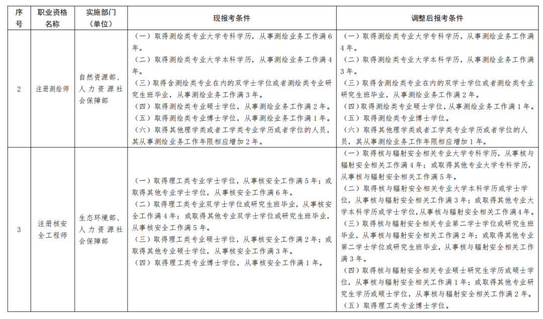 一、《部分準(zhǔn)入類職業(yè)資格考試工作年限要求調(diào)整方案》(見附件)自2022年起實(shí)施。除調(diào)整考試工作年限要求外,13項(xiàng)準(zhǔn)入類職業(yè)資格的其他考試報(bào)名條件不變。