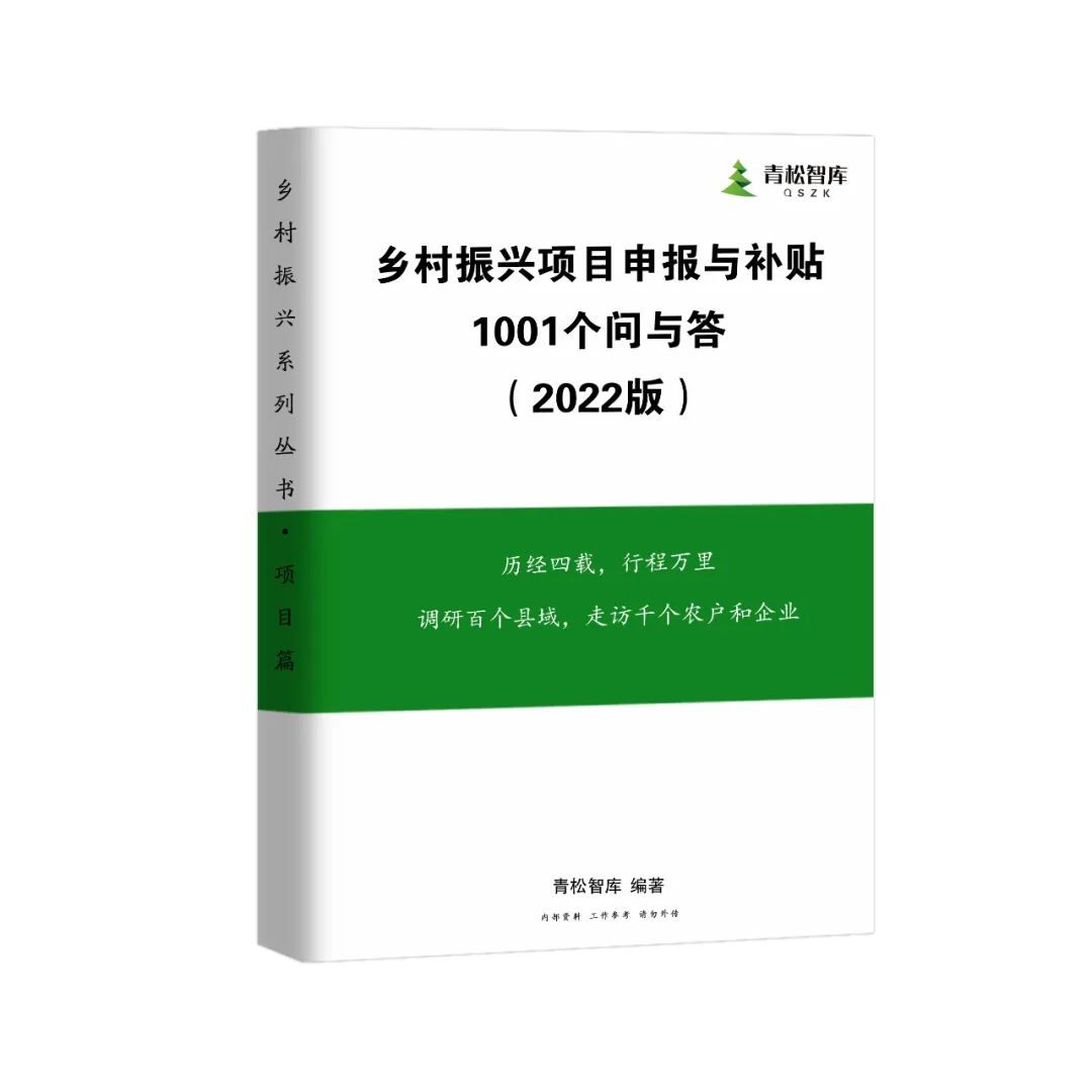 歷經(jīng)四載,行程萬(wàn)里,調(diào)研百個(gè)縣域,走訪千家農(nóng)戶(或企業(yè)),凝聚匠心,由青松智庫(kù)編制的《鄉(xiāng)村振興項(xiàng)目申報(bào)與補(bǔ)貼1001個(gè)問(wèn)與答》內(nèi)部資料,數(shù)量有限,是常用工作參考工具書,有需要的請(qǐng)加緊與青松智庫(kù)聯(lián)系。