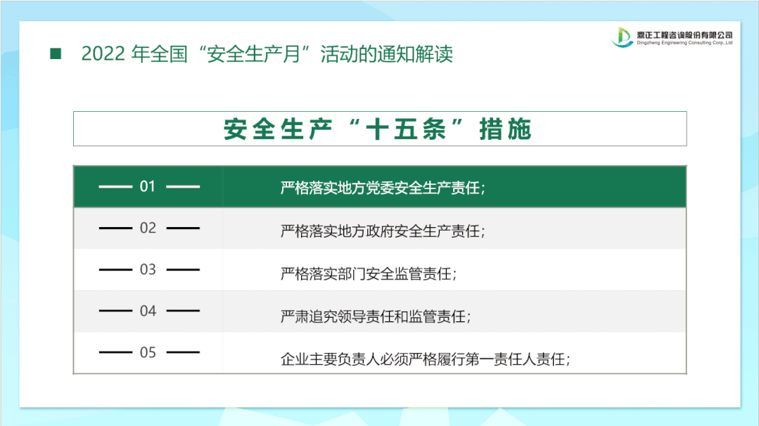 今年6月是第21個(gè)全國(guó)“安全生產(chǎn)月”,主題是“遵守安全生產(chǎn)法,當(dāng)好第一責(zé)任人”,6月16日為全國(guó)安全宣傳咨詢?nèi)?。鼎正咨詢積極響應(yīng)國(guó)家號(hào)召,全面啟動(dòng)安全生產(chǎn)月活動(dòng),凝聚安全共識(shí),進(jìn)一步強(qiáng)化底線思維,將安全意識(shí)植根于每個(gè)人心間。