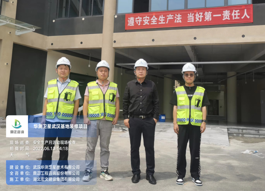 6月13日,鼎正咨詢副總經(jīng)理張虎、項(xiàng)目管理部經(jīng)理張力來(lái)到華測(cè)武漢基地項(xiàng)目現(xiàn)場(chǎng),開展2022年“安全生產(chǎn)月”活動(dòng)巡查,貫徹落實(shí)“抓安全管理就要抓隱患排查”思想,對(duì)華測(cè)項(xiàng)目在施工期間所開展的項(xiàng)目安全進(jìn)行檢查。張總表示:“針對(duì)現(xiàn)場(chǎng)發(fā)現(xiàn)的安全隱患,除了通過(guò)發(fā)送安全檢查報(bào)告、監(jiān)理通知單方式形成書面記錄以外,還要安排專人督促整改落實(shí)情況,做到安全隱患零容忍。”他強(qiáng)調(diào)杜絕僥幸心理,安全生產(chǎn)必須警鐘長(zhǎng)鳴,要遵循安全生產(chǎn)科學(xué)規(guī)律,及時(shí)整治潛在隱患,筑牢安全生產(chǎn)防線。
