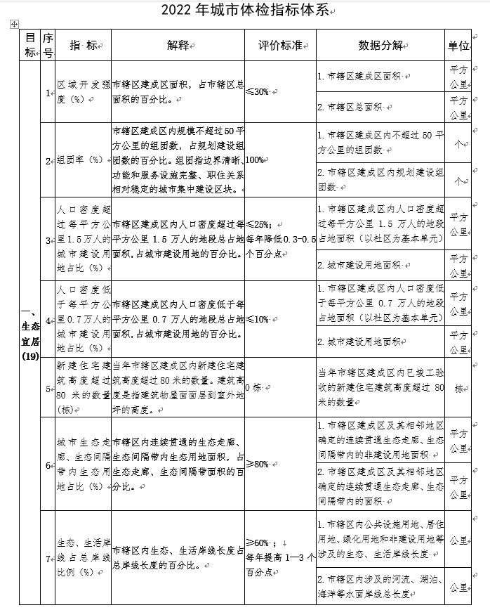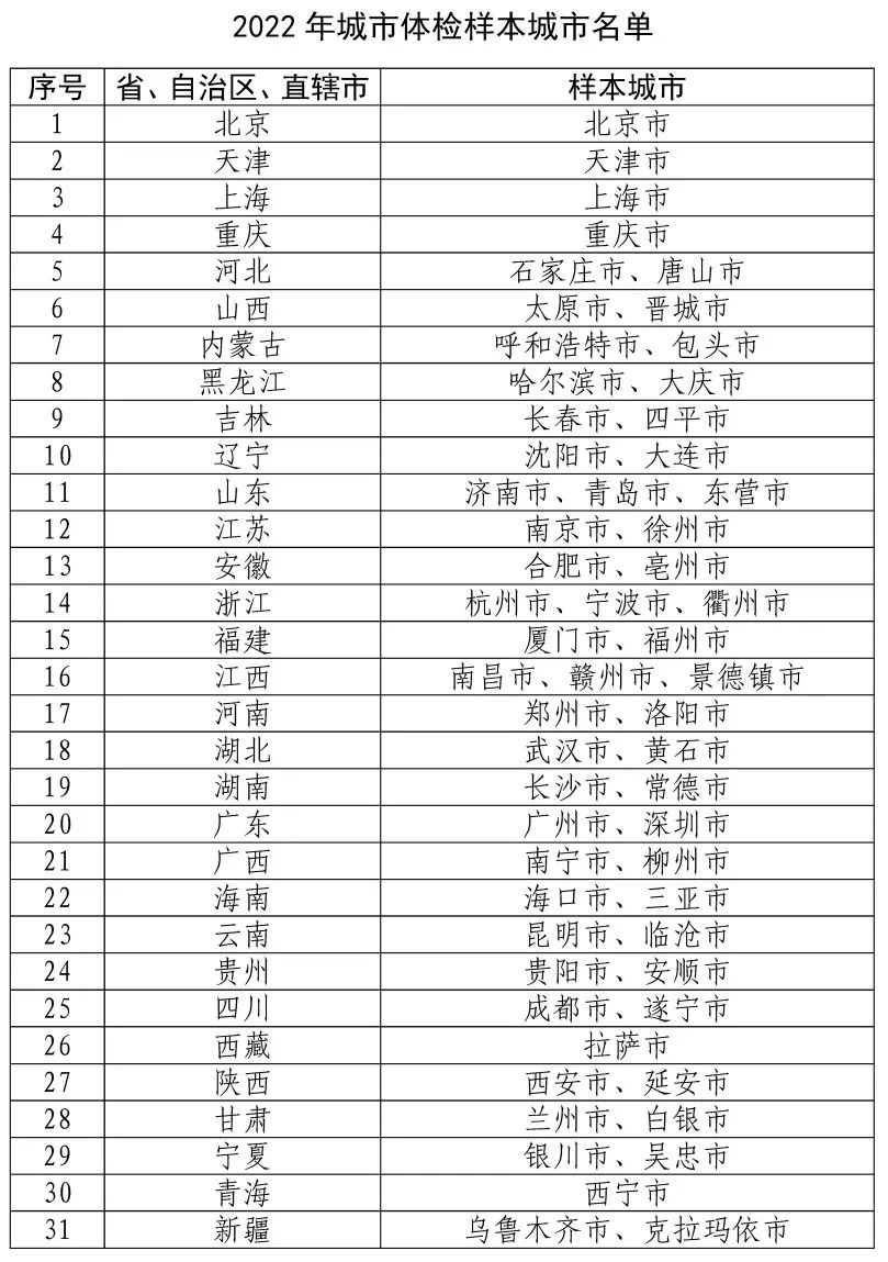 為深入貫徹習近平總書記關于建立城市體檢評估機制的重要指示精神,落實中共中央辦公廳、國務院辦公廳印發(fā)的《關于推動城鄉(xiāng)建設綠色發(fā)展的意見》部署要求,經協(xié)商研究,在歷年城市體檢工作基礎上,決定繼續(xù)選取直轄市、計劃單列市、省會城市和部分設區(qū)城市(見附件1,以下簡稱樣本城市)開展2022年城市體檢工作。現(xiàn)將有關事項通知如下: