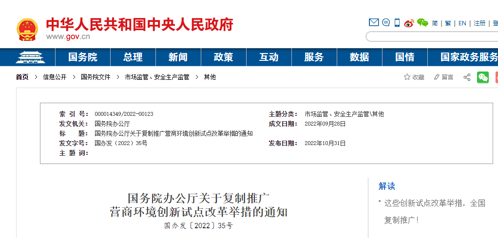 近日,國務(wù)院辦公廳發(fā)布關(guān)于復(fù)制推廣營商環(huán)境創(chuàng)新試點(diǎn)改革舉措的通知。一是進(jìn)一步破除區(qū)域分割和地方保護(hù)等不合理限制,“清除招投標(biāo)和政府采購領(lǐng)域?qū)ν獾仄髽I(yè)設(shè)置的隱性門檻和壁壘”,二是健全更加開放透明、規(guī)范高效的市場主體準(zhǔn)入和退出機(jī)制,三是持續(xù)提升投資和建設(shè)便利度,“推進(jìn)社會投資項目‘用地清單制’改革”、“分階段整合相關(guān)測繪測量事項”、“推行水電氣暖等市政接入工程涉及的行政審批在線并聯(lián)辦理”、“開展聯(lián)合驗(yàn)收‘一口受理’”、“進(jìn)一步優(yōu)化工程建設(shè)項目聯(lián)合驗(yàn)收方式”、“簡化實(shí)行聯(lián)合驗(yàn)收的工程建設(shè)項目竣工驗(yàn)收備案手續(xù)”、“對已滿足使用功能的單位工程開展單獨(dú)竣工驗(yàn)收”等。四是更好支持市場主體創(chuàng)新發(fā)展,五是持續(xù)提升跨境貿(mào)易便利化水平,六是維護(hù)公平競爭秩序,七是進(jìn)一步加強(qiáng)和創(chuàng)新監(jiān)管,八是依法保護(hù)各類市場主體產(chǎn)權(quán)和合法權(quán)益,九是優(yōu)化經(jīng)常性涉企服務(wù)。