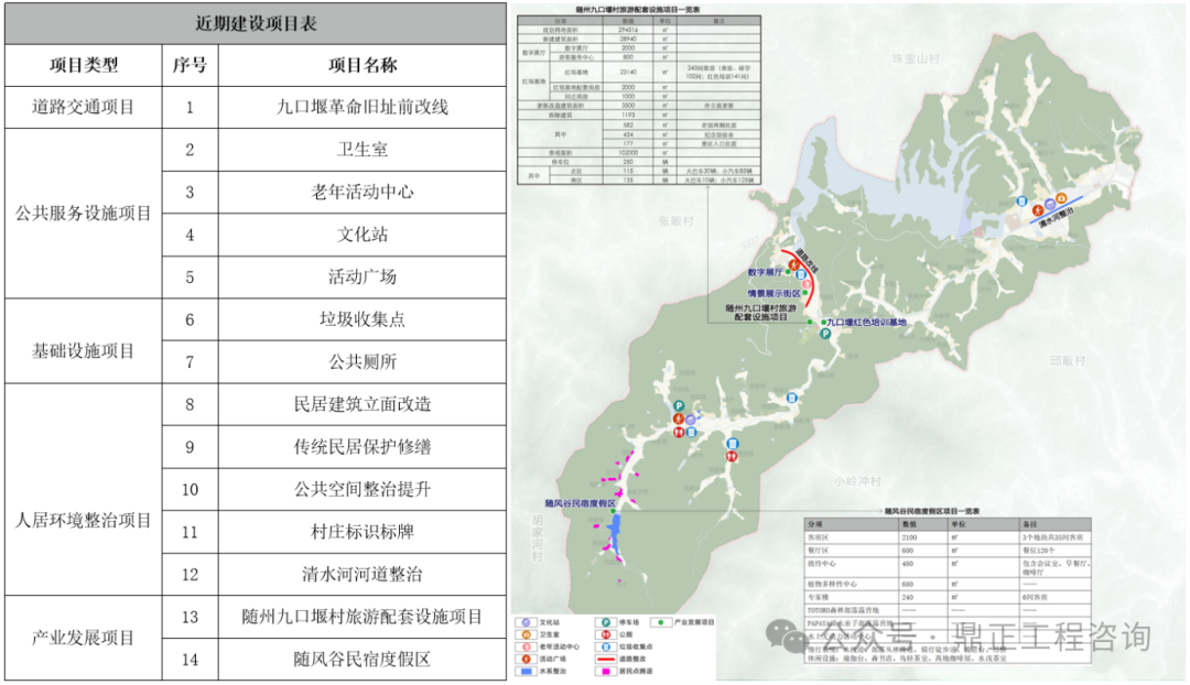 如九口堰村近期主要建設內容為基礎設施與公共服務設施完善、人居環(huán)境整治,以及部分池塘整治和產業(yè)發(fā)展項目。