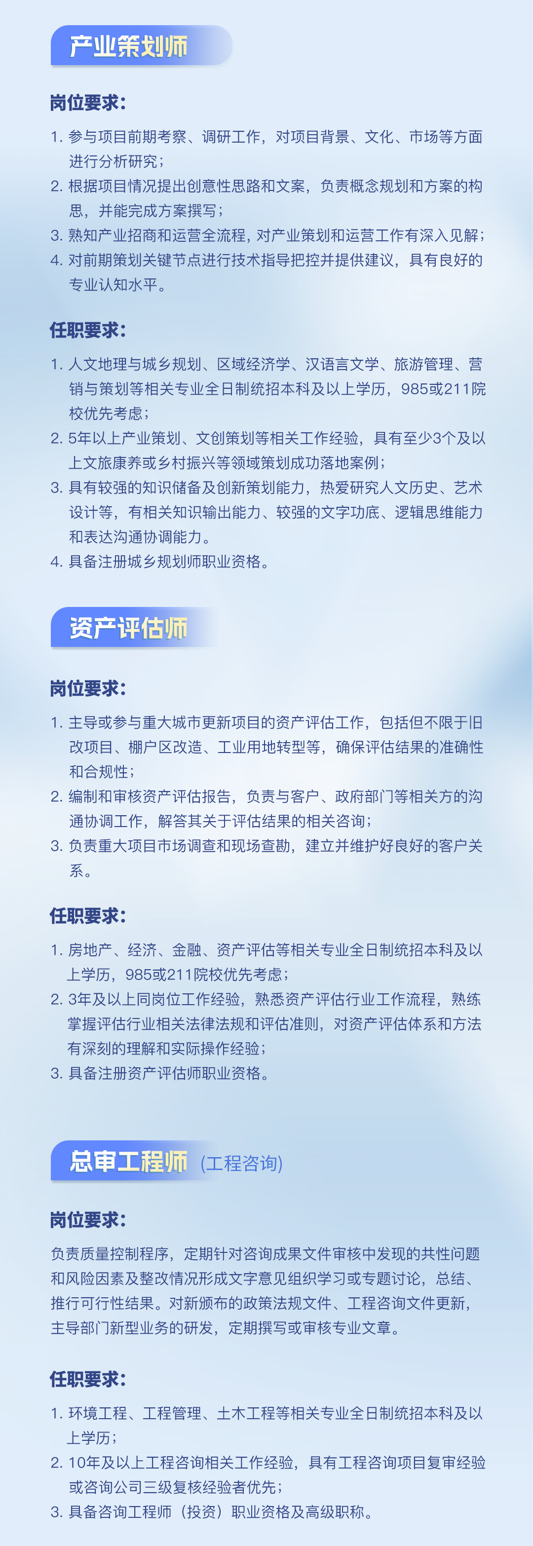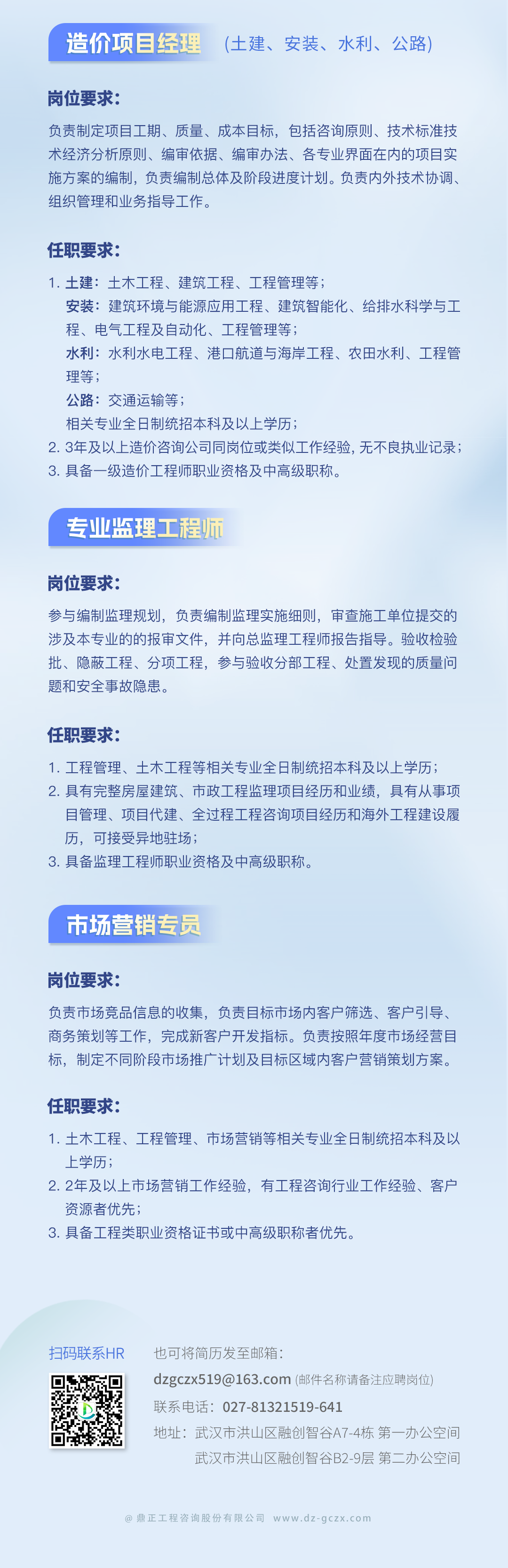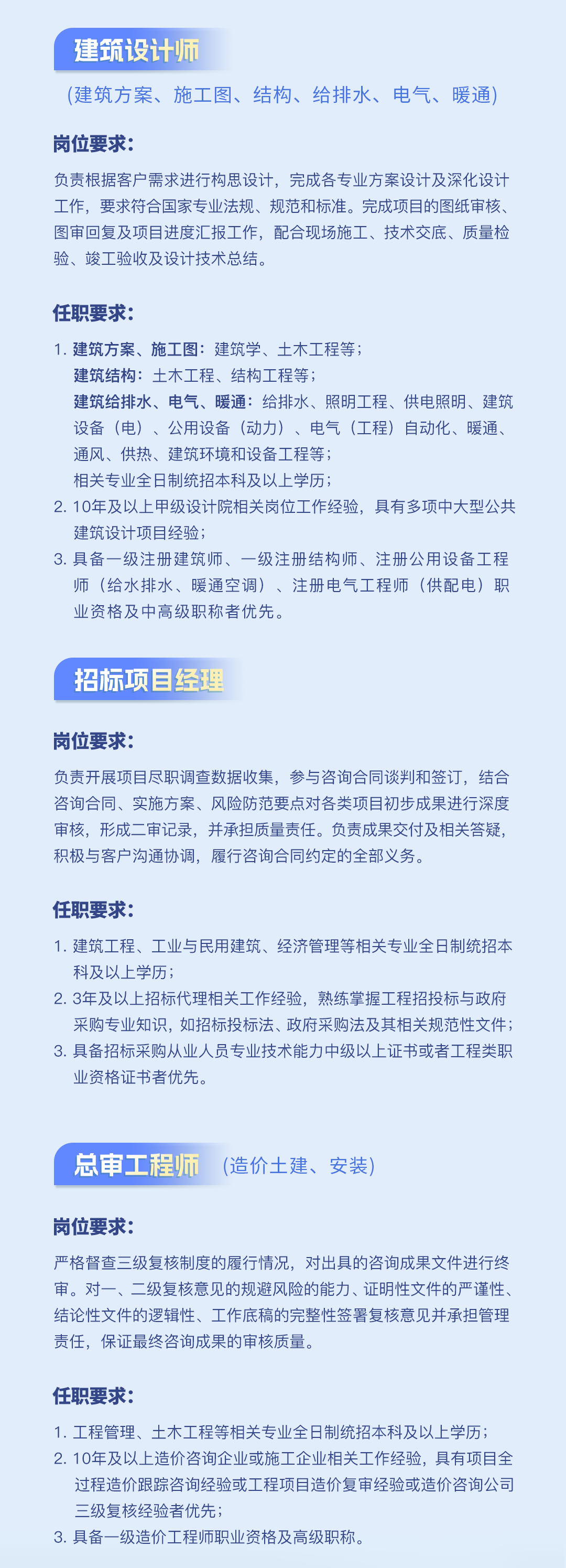 公司下設(shè)工程咨詢事業(yè)部、招標代理事業(yè)部、工程造價咨詢事業(yè)部、規(guī)劃設(shè)計事業(yè)部等機構(gòu)...