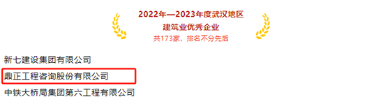 11月21日,武漢建筑業(yè)協(xié)會(huì)正式公布“2023年度武漢市最具成長性民營建筑企業(yè)”、“2022-2023年度武漢地區(qū)建筑業(yè)優(yōu)秀企業(yè)、優(yōu)秀企業(yè)家、優(yōu)秀總工程師、優(yōu)秀項(xiàng)目經(jīng)理”兩項(xiàng)評(píng)選結(jié)果,鼎正連續(xù)上榜,斬獲多項(xiàng)行業(yè)榮譽(yù)!