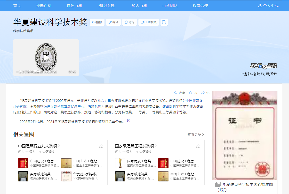 “華夏建設科學技術獎”于2002年設立,是中國建筑行業(yè)九大核心獎項之一,與魯班獎、詹天佑獎等齊名。該獎項經(jīng)國家科技部批準設立,是建設系統(tǒng)以社會力量辦獎形式設立的全國建設行業(yè)最高科學技術獎項。其旨在獎勵在建設行業(yè)工作中有重要貢獻的組織和公民,貫徹科教興國戰(zhàn)略,促進科技成果向生產(chǎn)力轉化,推動科技進步、提升技術水平、培養(yǎng)科技人才,全面提升我國建設行業(yè)綜合科技創(chuàng)新水平。