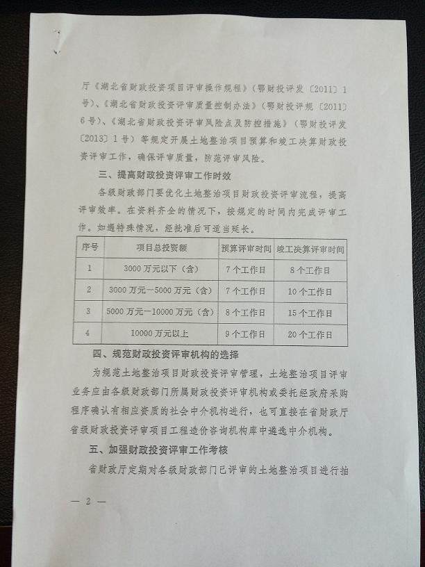 湖北省財政廳關(guān)于規(guī)范土地整治項目財政投資評審工作的通知