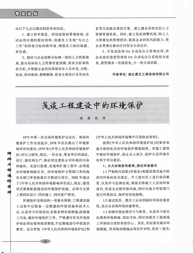 我公司論文在《湖北工程造價管理》雜志發(fā)表