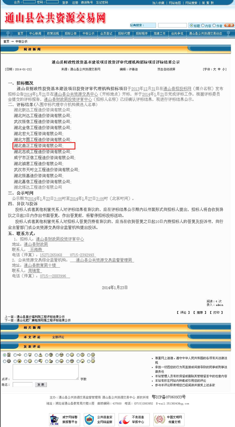 我公司入圍通山縣財政性投資基本建設(shè)項目投資評審代理機(jī)構(gòu)候選名單