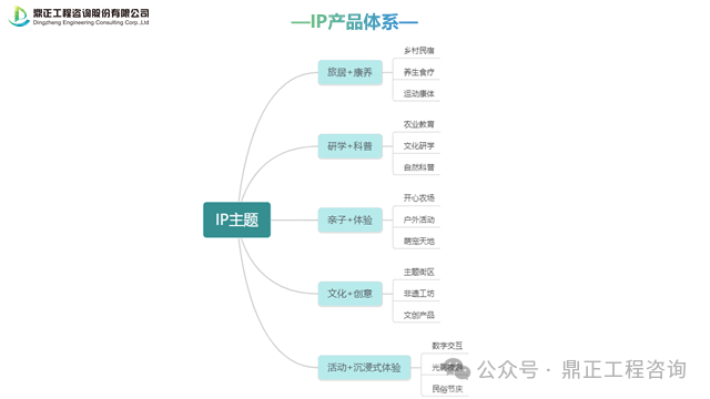 圍繞鄉(xiāng)村IP主題,結合鄉(xiāng)村資源本底開發(fā)構建旅居+康養(yǎng)、研學+科普、親子+體驗、文化+創(chuàng)意、活動+沉浸式體驗等不同的產品體系。