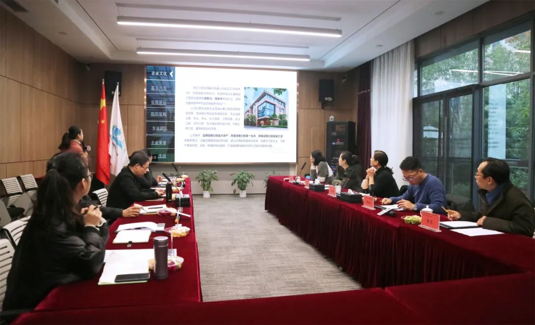2020年11月24日上午,武漢市建筑業(yè)協(xié)會咨詢分會副會長鄧小琴、工會主席張紅艷、副秘書長陳詩夢、武漢市博奧建設工程造價咨詢有限公司副總經理李炳兵、湖北省工業(yè)建筑集團有限公司設計咨詢分公司副總工程師張昊一行5人蒞臨鼎正公司交流座談,我司董事長王雁然、副總經理姚建功及相關部門經理出席會議。