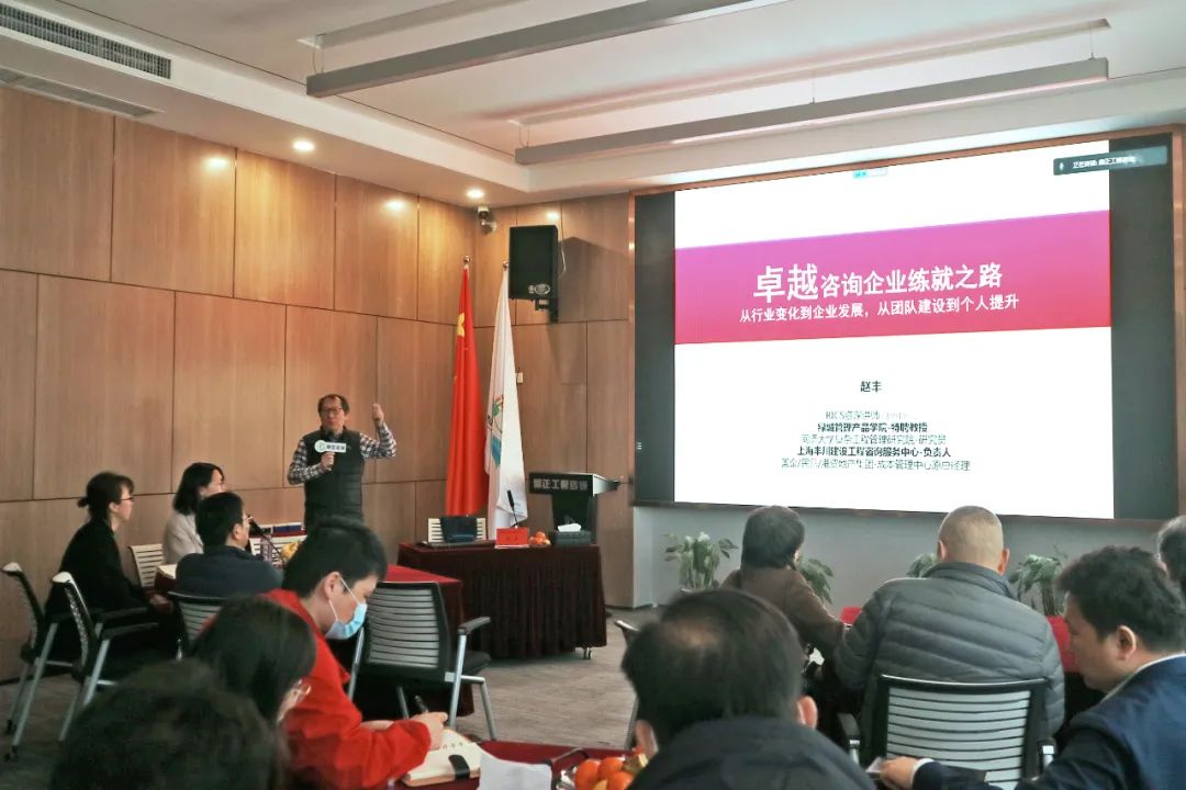 2021年3月4日,上海建筑造價(jià)大數(shù)據(jù)研究院院長、英國皇家特許測量師學(xué)會(RICS)資深講師趙豐老師受邀為鼎正傳經(jīng)送寶,進(jìn)行EPC模式相關(guān)問題的交流以及《卓越造價(jià)咨詢企業(yè)練就之路》專題授課。