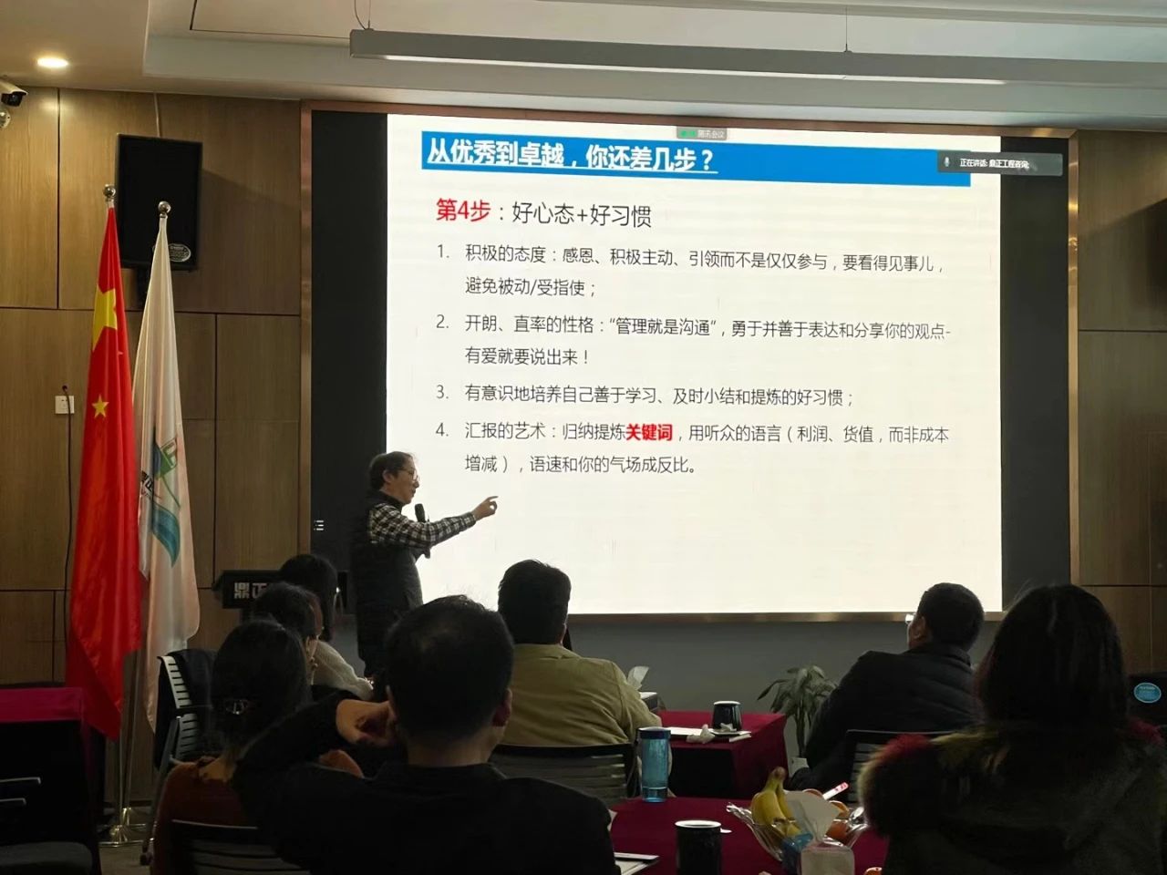 下午13:30,趙豐老師的《卓越造價(jià)咨詢企業(yè)練就之路》專題授課在鼎正珞珈多功能廳正式開講,此次授課采用線上線下相結(jié)合的方式同步開啟,鼎正總部、各分公司以及駐扎在項(xiàng)目一線的同事同步參與學(xué)習(xí)。