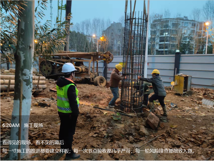 凌晨五點(diǎn)的工地,屬于項(xiàng)目管理部的十二時(shí)辰正式拉開(kāi)帷幕,旁站、巡視、平行檢驗(yàn)。