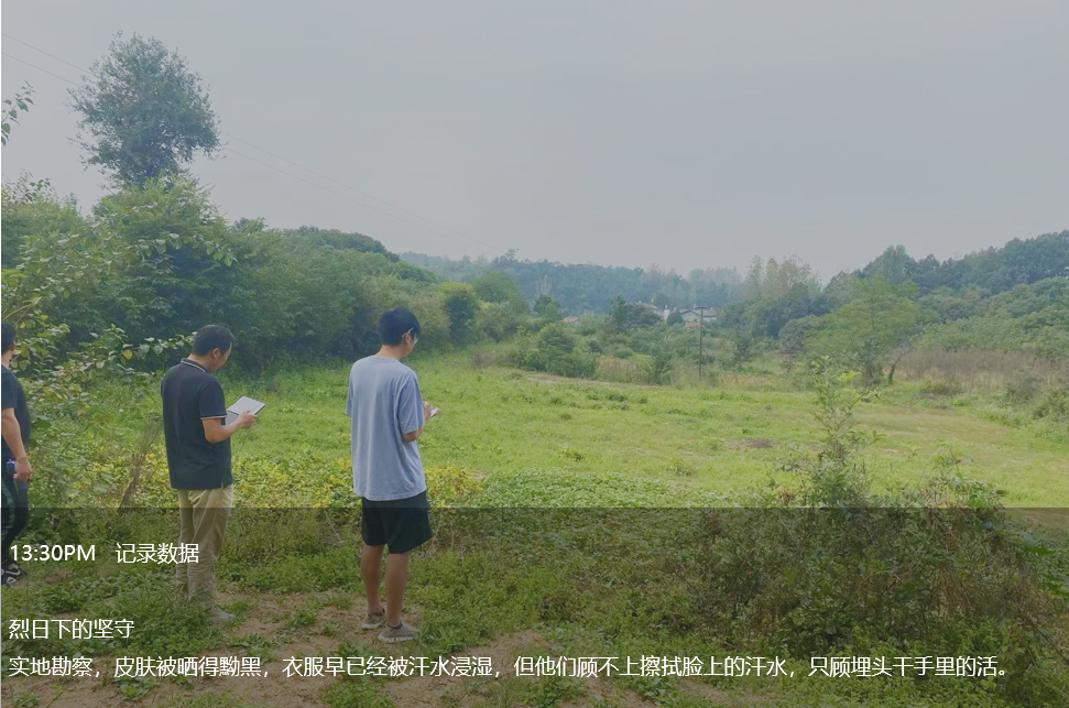 下午2點(diǎn)自然資源部虎哥無(wú)懼烈日“烤”驗(yàn),在項(xiàng)目現(xiàn)場(chǎng)開(kāi)展勘察工作,他以山巒為稿紙,以圖紙為筆,以汗水為墨,書寫最真實(shí)的工作日常。