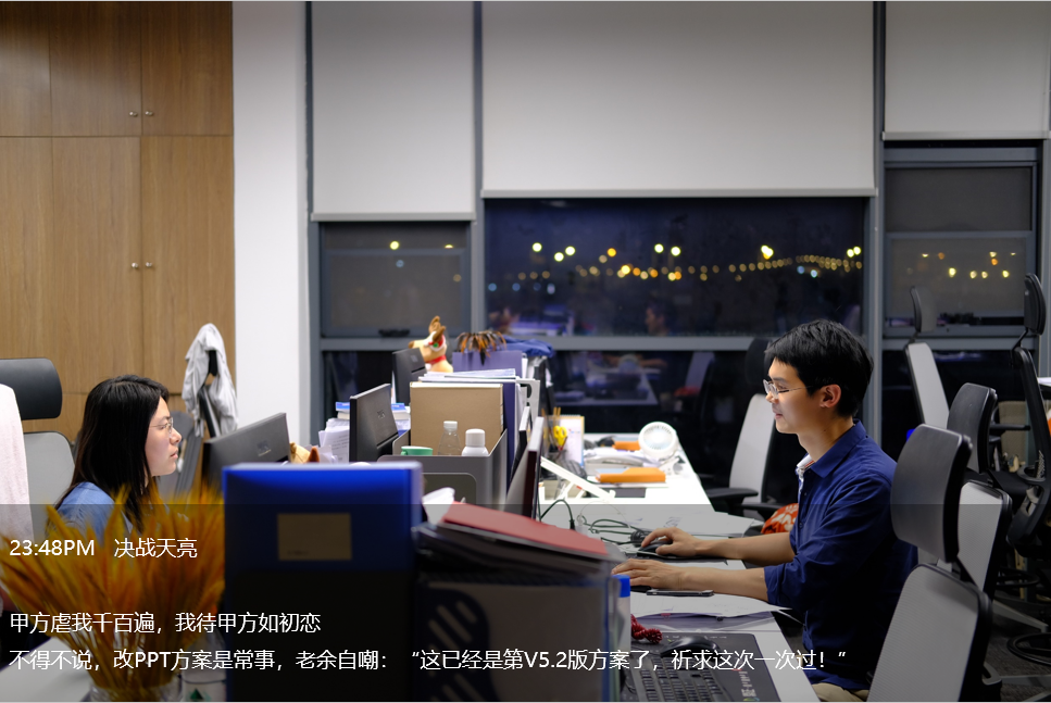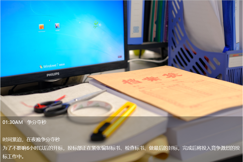 凌晨1點(diǎn),投標(biāo)部毓兒還在趕標(biāo)書,這是她這個(gè)月第五份標(biāo)書,已經(jīng)連續(xù)熬了四個(gè)晚上。她說(shuō):“對(duì)于投標(biāo)人說(shuō),有一大半的標(biāo)書,都是在半夜里完成的。尤其是臨近開(kāi)標(biāo)的前兩天,基本都會(huì)加班到很晚?!?/span>