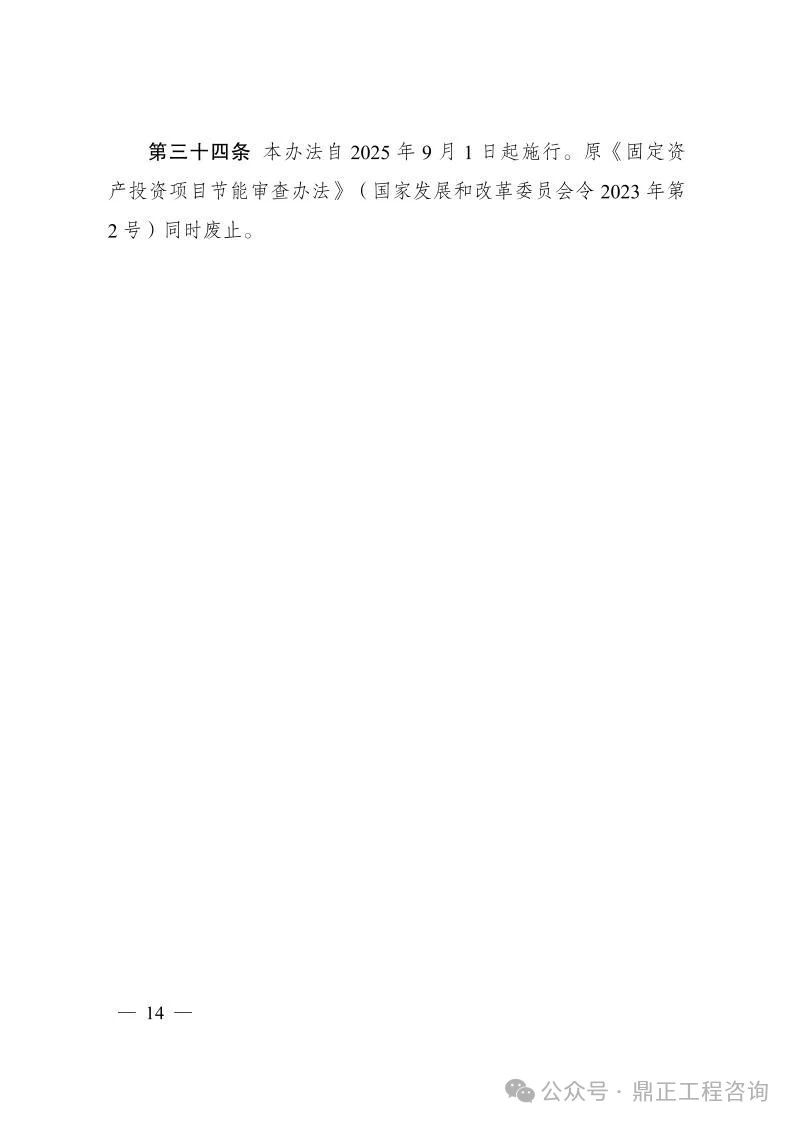 《辦法》自2025年9月1日起施行,原《固定資產(chǎn)投資項(xiàng)目節(jié)能審查辦法》(國(guó)家發(fā)展和改革委員會(huì)令2023年第2號(hào))同時(shí)廢止。
