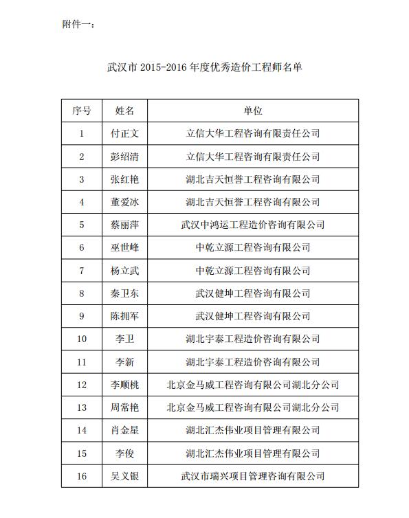 根據(jù)武建價協(xié)【2016】77號文件公示,我司員工楊靜、吳瓊榮獲2015-2016年度武漢市"優(yōu)秀造價工程師"稱號,黃建新、張恒、吳輝、彭萍榮獲2015-2016年度“優(yōu)秀造價專業(yè)人員”稱號。此次榮譽的獲得,既是對我司同志工作的肯定,也展示了鼎正人愛崗敬業(yè)、爭創(chuàng)一流的精神風貌。鼎正公司將以更加昂揚的斗志和飽滿的熱情,服務(wù)于企業(yè)、服務(wù)于社會!
