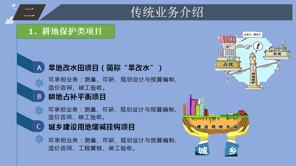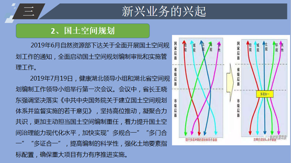 下午,來自自然資源事業(yè)部的胡小虎進(jìn)行了《新形勢(shì)下的自然資源咨詢業(yè)務(wù)探析》的主題分享。胡小虎結(jié)合2018年3月自然資源部、農(nóng)業(yè)農(nóng)村部組建成立的背景,對(duì)自然資源傳統(tǒng)業(yè)務(wù)、新興業(yè)務(wù)的興起做出了詳細(xì)介紹,并從“客戶基本信息分析”、“客戶采購項(xiàng)目分析”、“市場(chǎng)分析”、“從業(yè)單位分析”、“擬拓展方向”五個(gè)方面對(duì)自然資源咨詢業(yè)務(wù)進(jìn)行了分析。