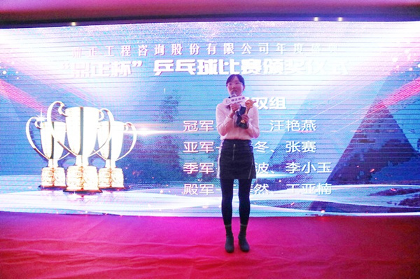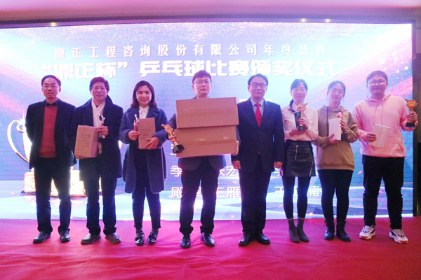 隨后,頒獎(jiǎng)典禮正式開(kāi)始。首先進(jìn)行的是鼎正咨詢歷屆傳統(tǒng)環(huán)節(jié)第七屆“鼎正杯”乒乓球比賽頒獎(jiǎng)儀式。鼎正運(yùn)動(dòng)健兒們?cè)诒緦闷古仪虮荣愔斜M情揮灑著激情與汗水,充分展現(xiàn)了鼎正人團(tuán)結(jié)向上、自強(qiáng)不息的精神風(fēng)貌。