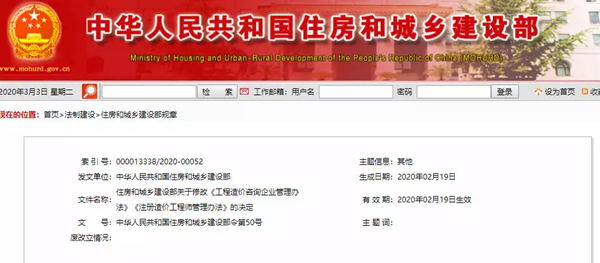 2020年3月3日,住建部50號令“住房和城鄉(xiāng)建設部關(guān)于修改《工程造價咨詢企業(yè)管理辦法》《注冊造價工程師管理辦法》的決定”一夜間在工程咨詢行業(yè)引發(fā)了激烈的討論。