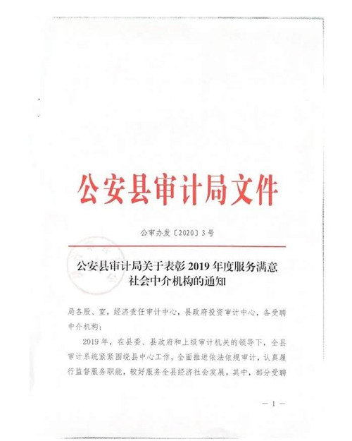 此次獲評“2019年度服務(wù)滿意單位”,也是對鼎正荊州分公司同事們工作成績的高度認(rèn)可!在今后的工作中,我們將繼續(xù)恪守審計業(yè)務(wù)質(zhì)量控制、風(fēng)險控制等制度,堅持獨立、客觀、公正、公平的執(zhí)業(yè)原則,為客戶提供更優(yōu)質(zhì)更專業(yè)的咨詢服務(wù)。