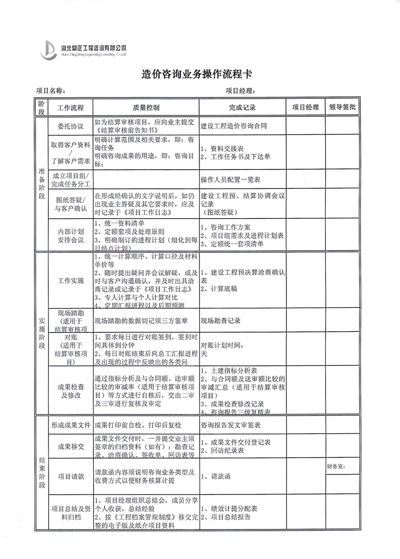 造價(jià)咨詢業(yè)務(wù)操作流程卡